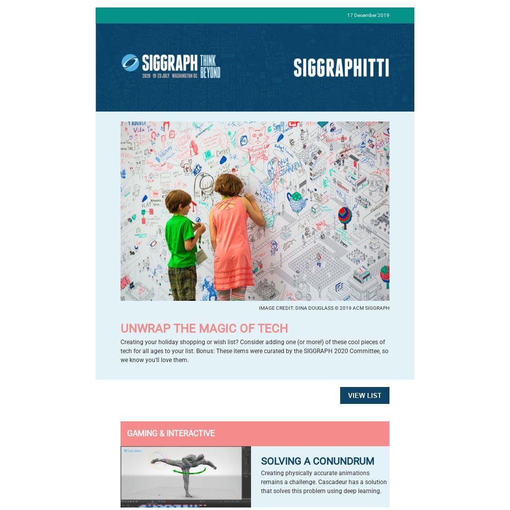 Submission deadlines are approaching! Several SIGGRAPH 2020 programs have deadlines in January, including Art Gallery, Art Papers, Student Volunteers, and Technical Papers. Learn more in the program videos.