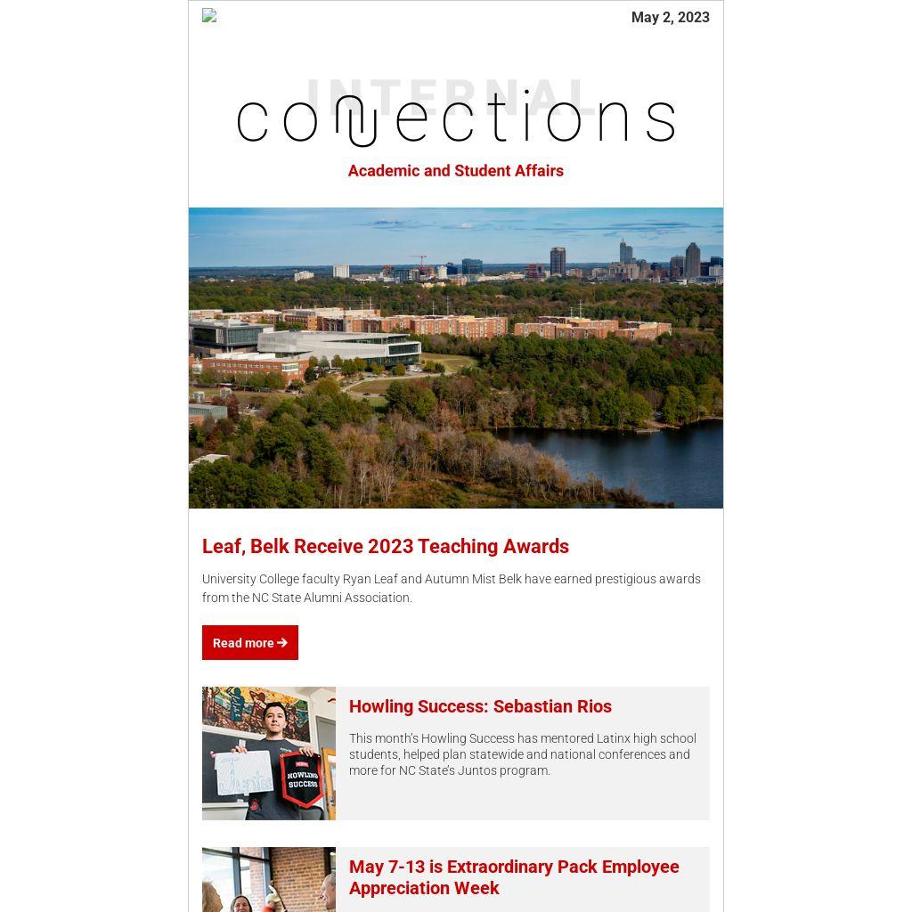 - NC State’s College Advising Corps is now hiring advisers for its 2023-24 cohort. If you know any graduates who would be interested in applying, please direct them here or email Nicole Ditillo or Rob McAuliffe with questions.