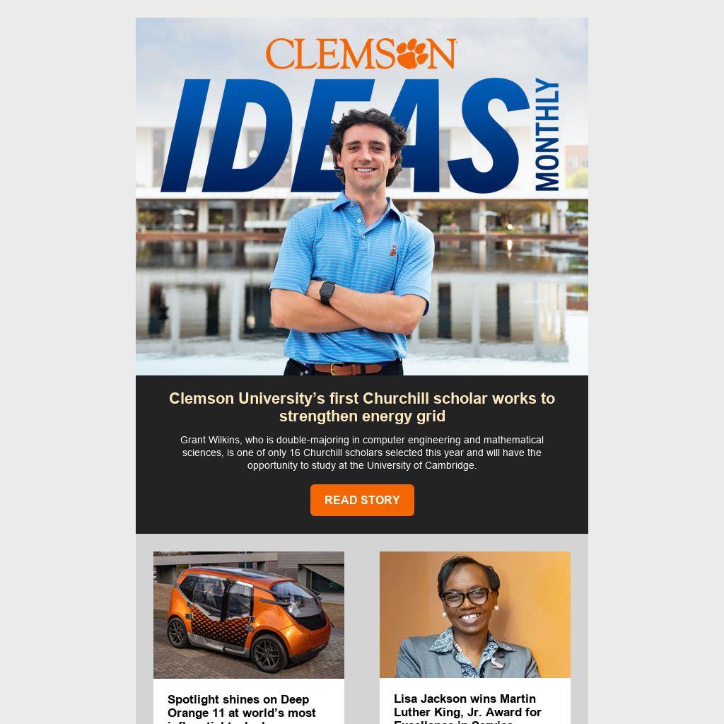IDEAS Monthly is published by the PROMO Office in Clemson University’s College of Engineering, Computing and Applied Sciences. Contact the team with feedback or story suggestions.