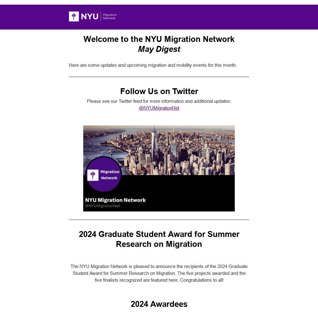 Thanks to all of you for your continued engagement with the network. If you have any questions or concerns, please feel free to email migration-network@nyu.edu.