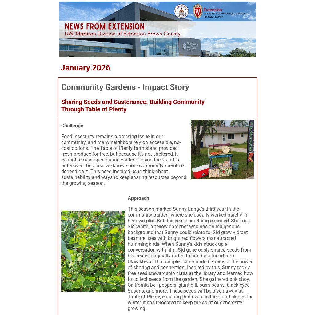 Join the Extension Horticulture Program throughout 2026 for an opportunity to connect with plant health experts from the UW-Madison Division of Extension. Each session, held monthly on Wednesdays, offers a chance to ask questions about trees and shrubs, homegrown fruits and vegetables, indoor plants, flowering ornamentals, lawns, and more.
