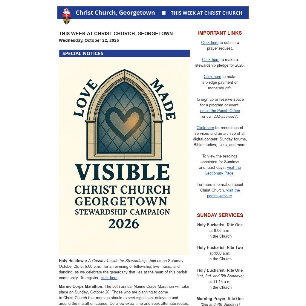 THIS WEEK AT CHRIST CHURCH, GEORGETOWN Wednesday, October 22, 2025