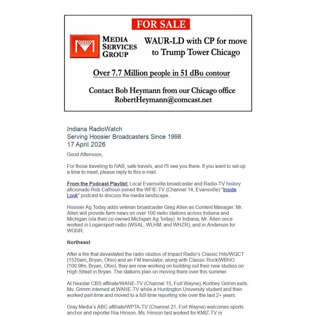 Gray Media closes on their acquisition of CBS affiliate/WTHI-TV (Channel 10, Terre Haute) from Allen Media Group. Also, Gray welcomes Jim Hays at GM. Mr. Hays last worked as Marketing Director for Gray sister WOIO-TV in Cleveland, Ohio.