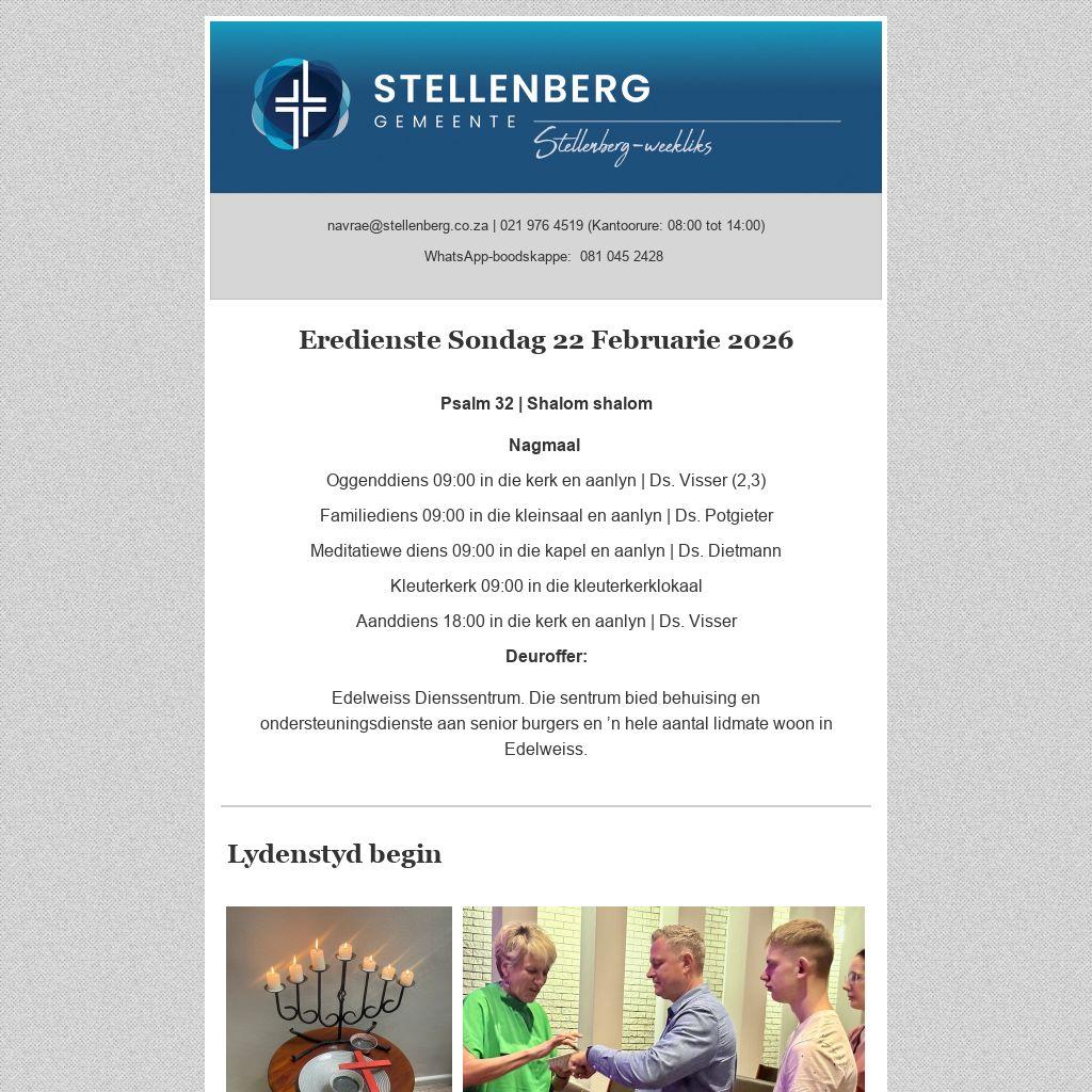 Daar sal Sondag by oggenddienste lyste beskikbaar wees waarop jy kan aandui of jy met die maak van poedings behulpsaam kan wees.