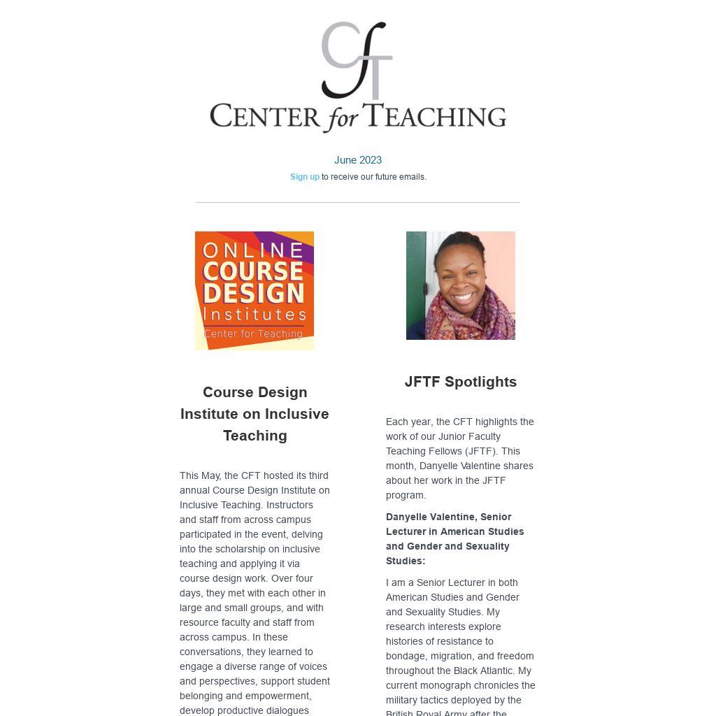 Each year, the CFT highlights the work of our Junior Faculty Teaching Fellows (JFTF). This month, Danyelle Valentine shares about her work in the JFTF program.