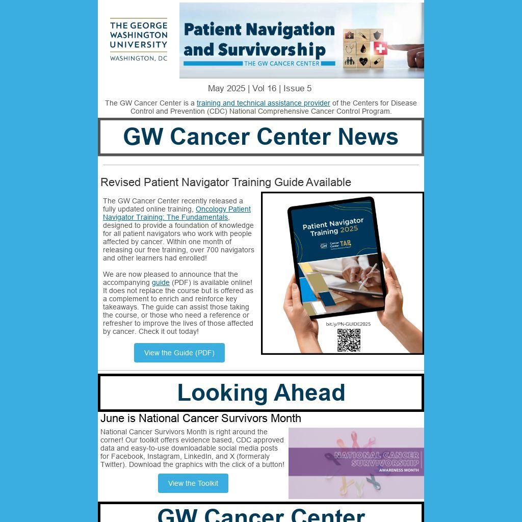 The GW Cancer Center is a training and technical assistance provider of the Centers for Disease Control and Prevention (CDC) National Comprehensive Cancer Control Program.