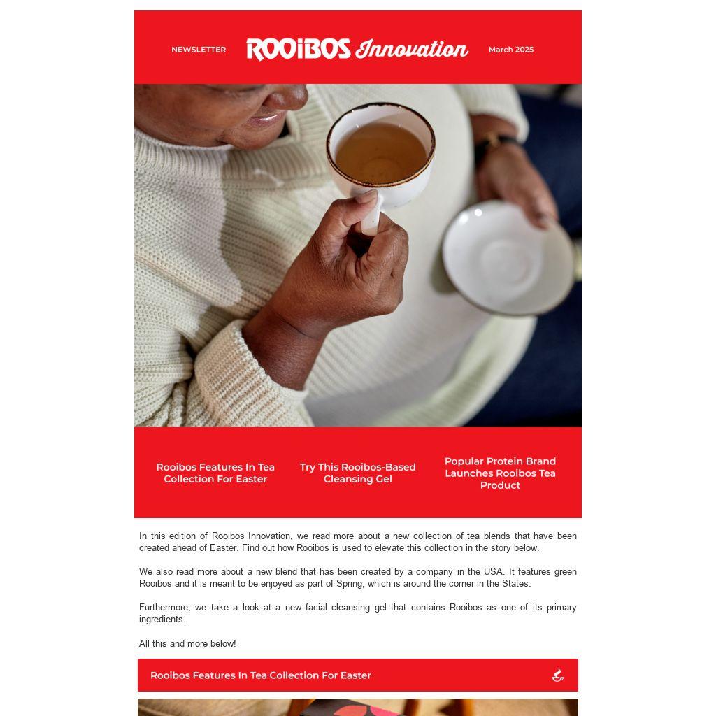 In this edition of Rooibos Innovation, we read more about a new collection of tea blends that have been created ahead of Easter. Find out how Rooibos is used to elevate this collection in the story below.