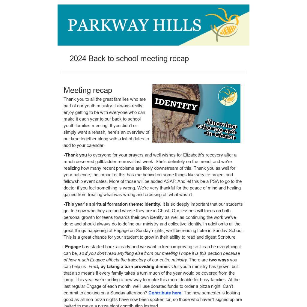 Other dates soon to come: Fall service opportunities, Wednesday night activities, this year's lock-in, fundraisers, and our annual Sabbath retreat (usually this retreat occurs in the fall but will be moved to early spring due to The Connection)