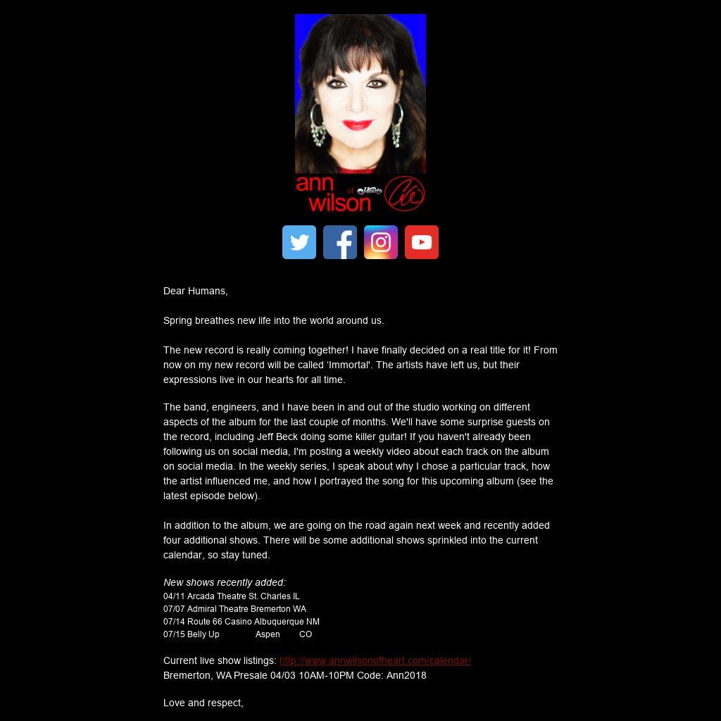 The new record is really coming together! I have finally decided on a real title for it! From now on my new record will be called ‘Immortal'. The artists have left us, but their expressions live in our hearts for all time.