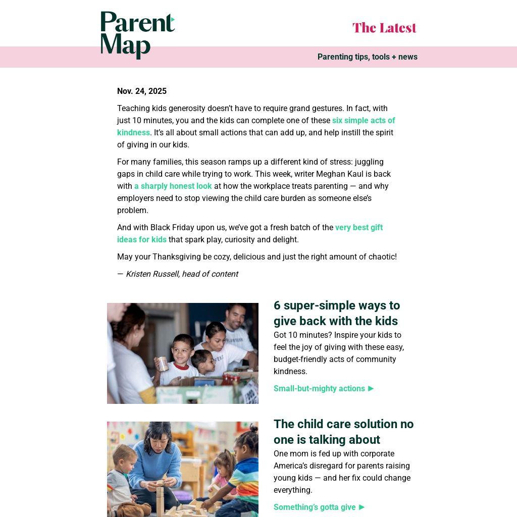 six simple acts of kindness. It’s all about small actions that can add up, and help instill the spirit of giving in our kids.