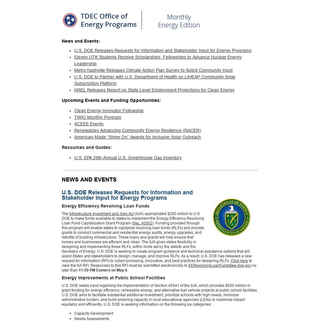 | U.S. DOE Releases Requests for Information and Stakeholder Input for Energy Programs