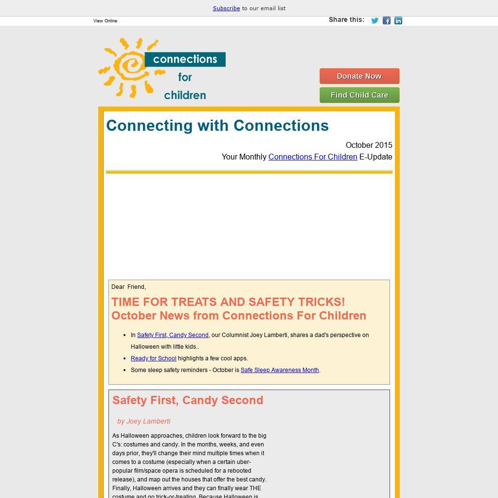 Dear Friend, TIME FOR TREATS AND SAFETY TRICKS! October News from Connections For Children