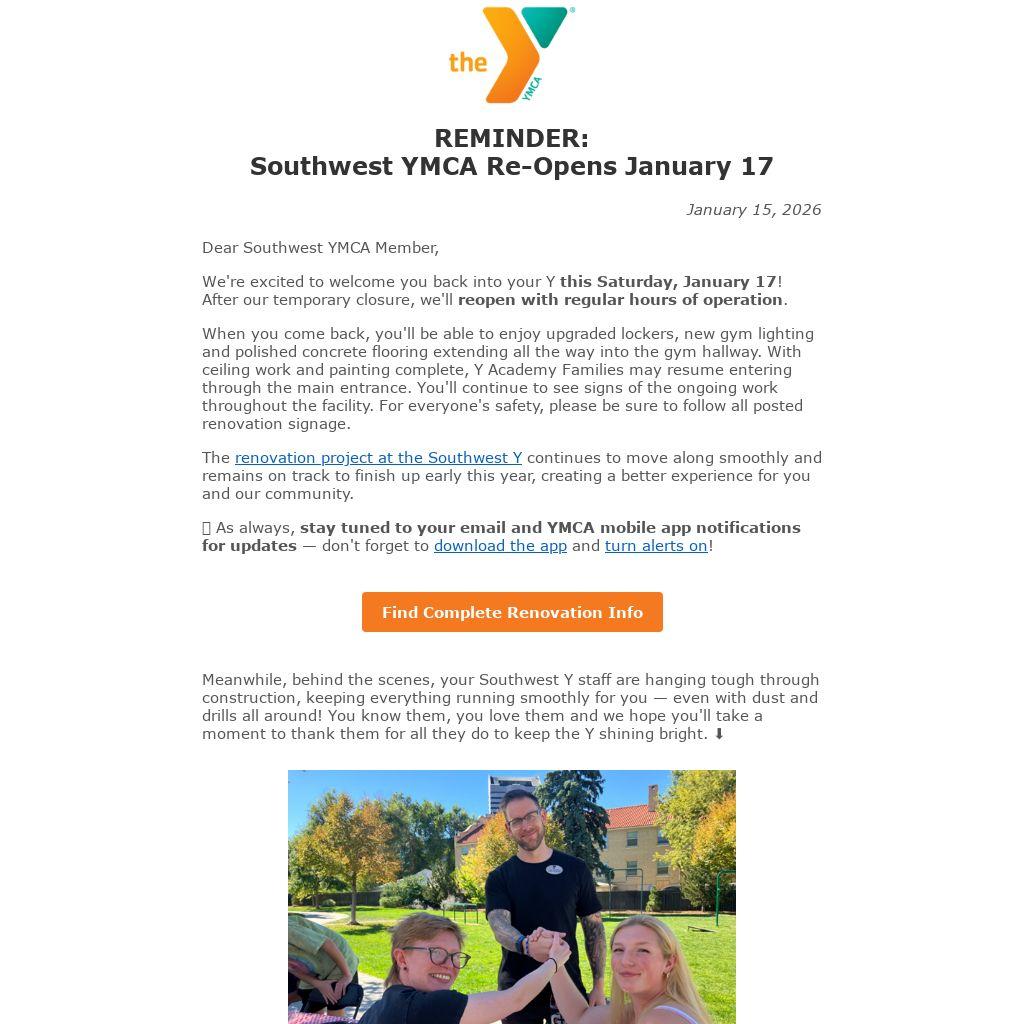🔔 As always, stay tuned to your email and YMCA mobile app notifications for updates — don't forget to download the app and turn alerts on!