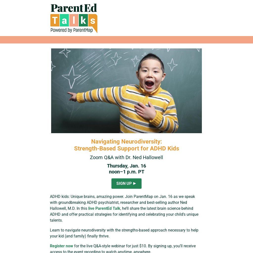 ADHD kids: Unique brains, amazing power. Join ParentMap on Jan. 16 as we speak with groundbreaking ADHD psychiatrist, researcher and best-selling author Ned Hallowell, M.D. In this live ParentEd Talk, he’ll share the latest brain science behind ADHD and offer practical strategies for identifying and celebrating your child’s unique talents.
