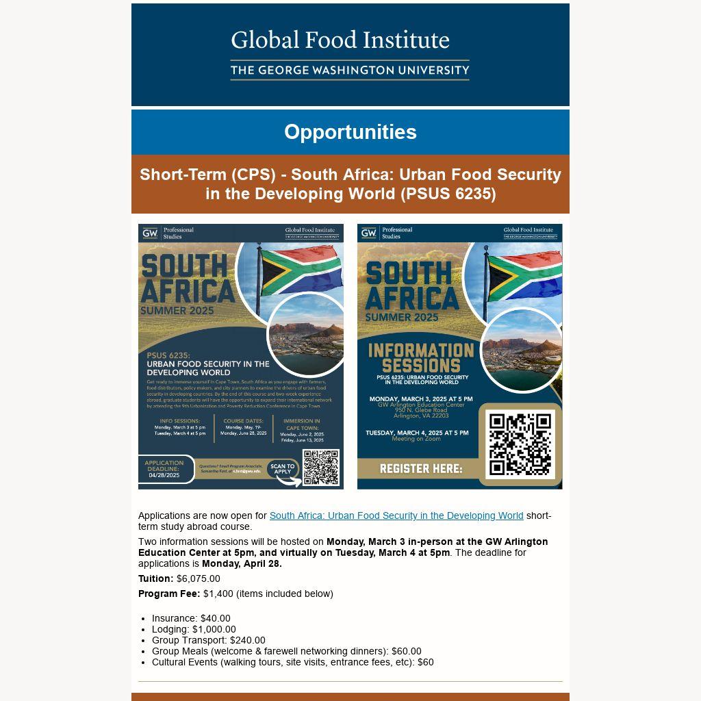 Applications are now open for South Africa: Urban Food Security in the Developing World short-term study abroad course.