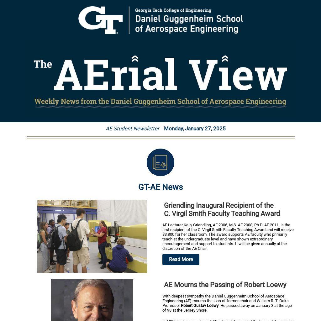 With deepest sympathy the Daniel Guggenheim School of Aerospace Engineering (AE) mourns the loss of former chair and William R. T. Oaks Professor Robert Gustav Loewy. He passed away on January 3 at the age of 98 at the Jersey Shore.