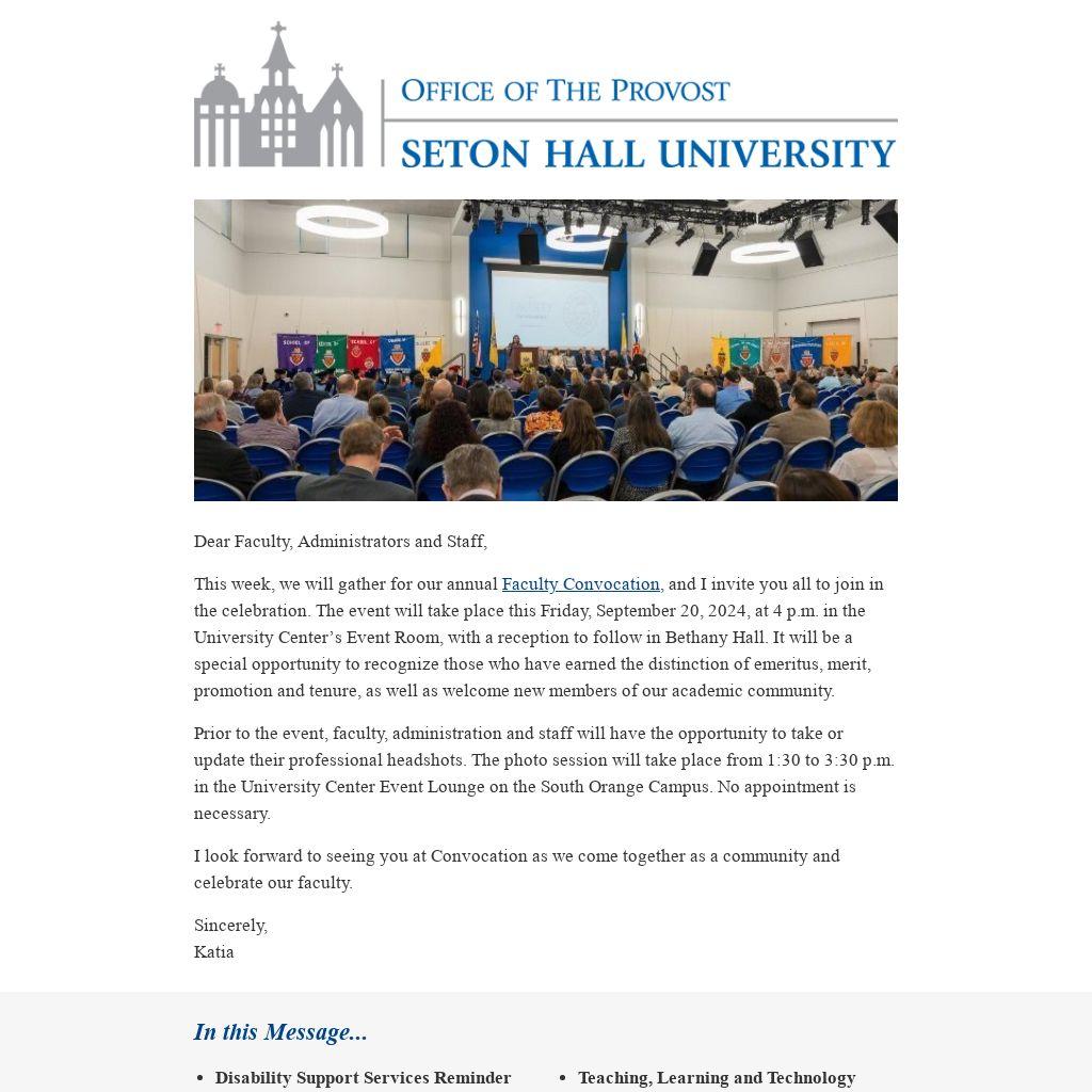 I look forward to seeing you at Convocation as we come together as a community and celebrate our faculty.