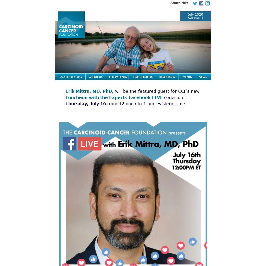 July 30, Catherine Bouvier, CEO, Neuroendocrine Cancer UK; President, International Neuroendocrine Cancer Alliance; previously a NET nurse specialist