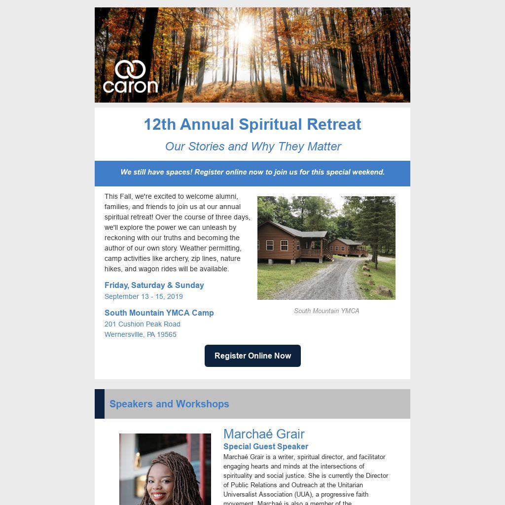 You are required to bring your own sheets, blankets, sleeping bags, pillows, and towels. Please be sure to bring a flashlight with you to registration - the camp walkways are not well-lit. Walkways are not paved and may not be appropriate for people with significant mobility issues. For special dietary needs, please contact Jamie Chelius at jchelius@caron.org.