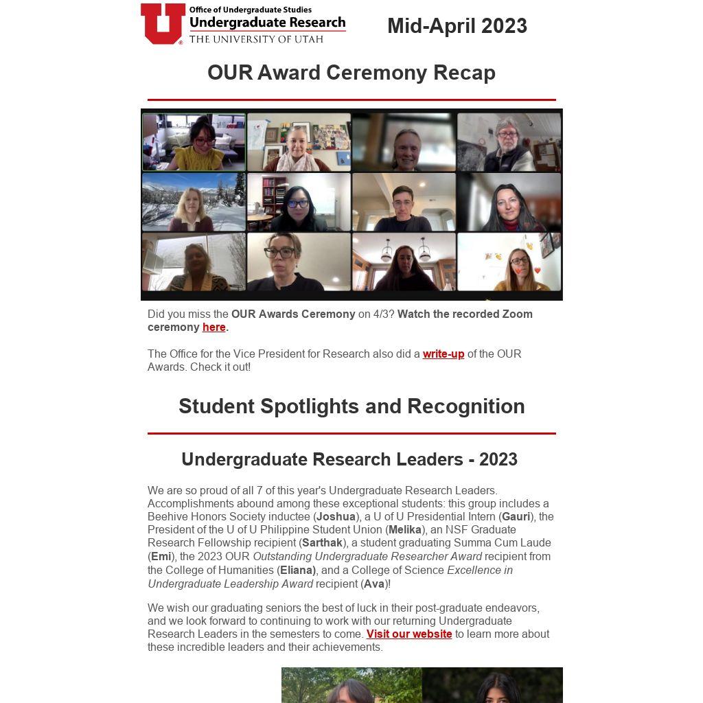 Did you miss the OUR Awards Ceremony on 4/3? Watch the recorded Zoom ceremony here.