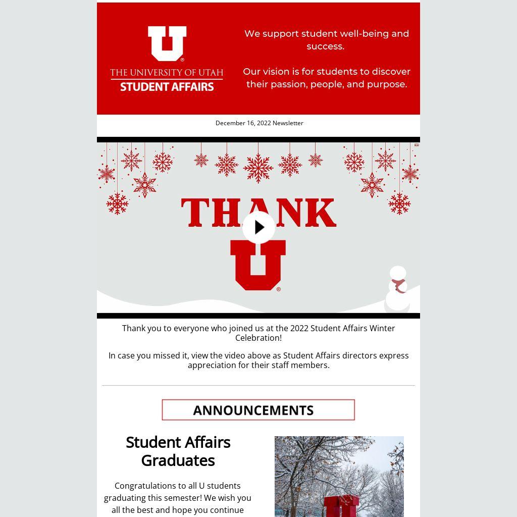 Congratulations to all U students graduating this semester! We wish you all the best and hope you continue discovering your passion, people, and purpose wherever your next chapter takes you.