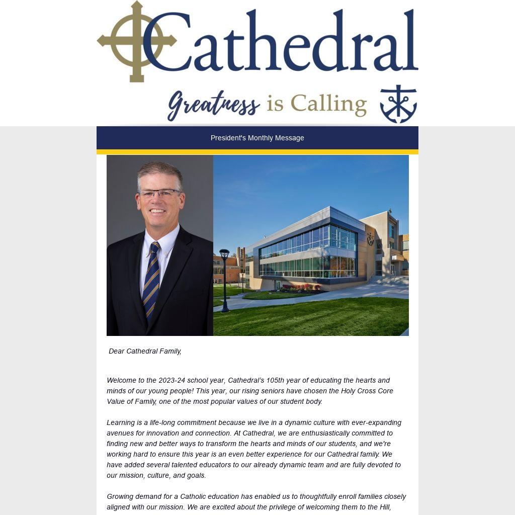It’s hard to express my gratitude for you and your love for Cathedral High School. Together we are going to make this our best year yet. Please continue to pray for our students, families, educators, and dear old Cathedral.
