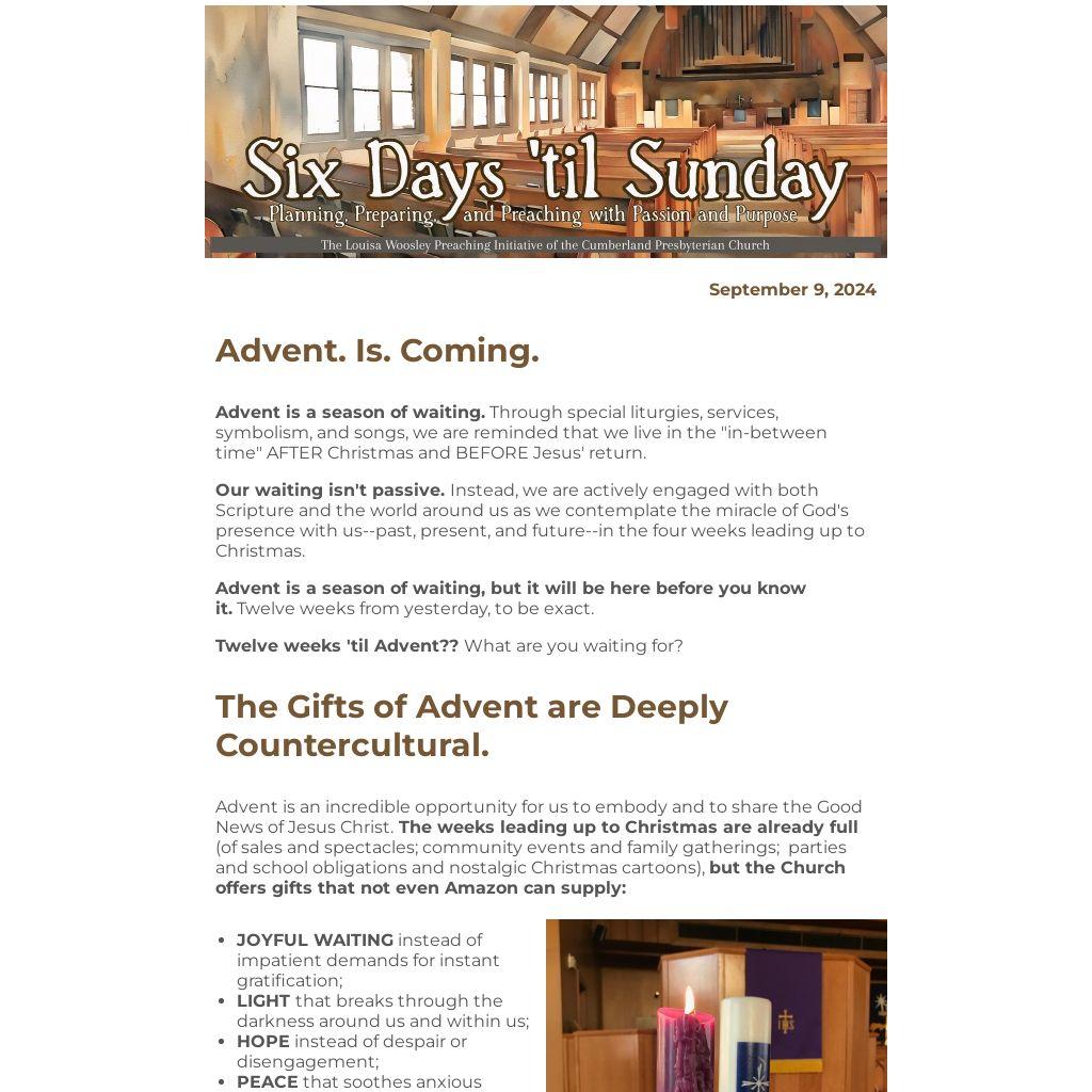 Advent begins in TWELVE WEEKS. The time to prepare is NOW!