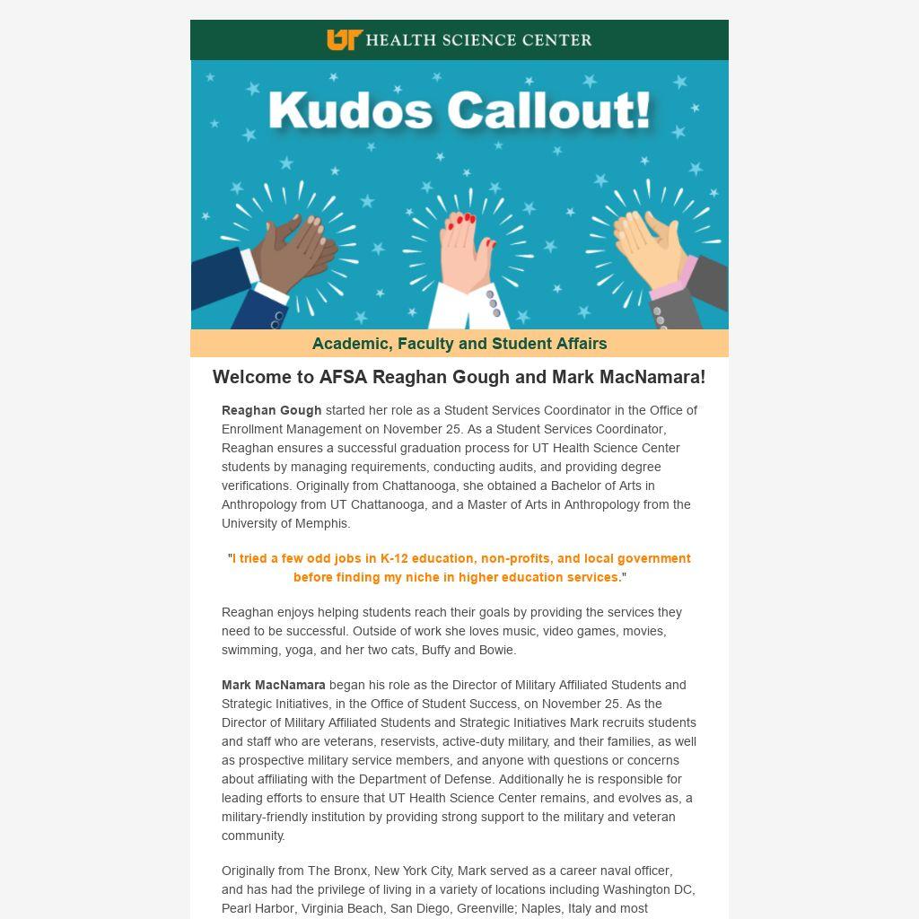 Mark MacNamara began his role as the Director of Military Affiliated Students and Strategic Initiatives, in the Office of Student Success, on November 25. As the Director of Military Affiliated Students and Strategic Initiatives Mark recruits students and staff who are veterans, reservists, active-duty military, and their families, as well as prospective military service members, and anyone with questions or concerns about affiliating with the Department of Defense. Additionally he is responsible for leading efforts to ensure that UT Health Science Center remains, and evolves as, a military-friendly institution by providing strong support to the military and veteran community.