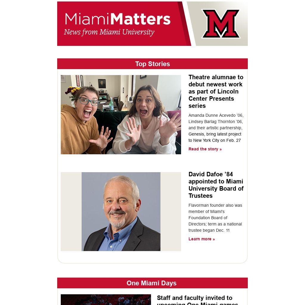 Stories from student contributors to Miami University’s Student News Bureau are hosted on the Miami News website. The new bureau is an initiative of the MiamiTHRIVE strategic plan