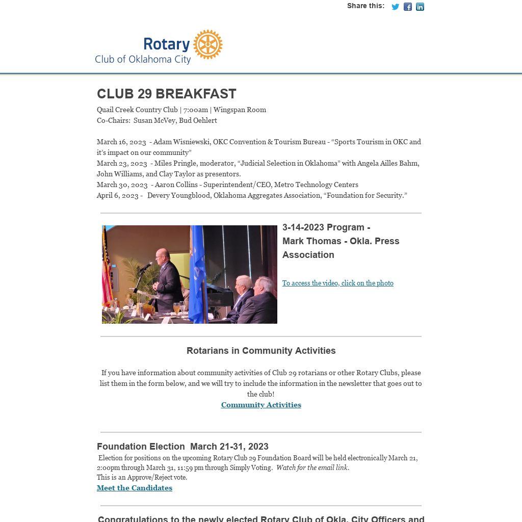 June 13, 2023 - Rotary Meeting location changed to National Cowboy & Western Heritage Museum