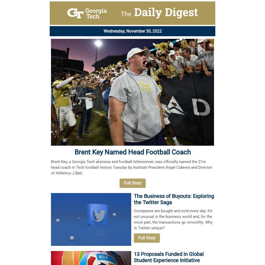 Brent Key, a Georgia Tech alumnus and football letterwinner, was officially named the 21st head coach in Tech football history Tuesday by Institute President Ángel Cabrera and Director of Athletics J Batt.