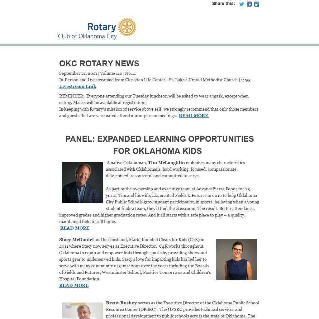 OKC Rotary NewsSeptember 21, 2021| Volume 110| No.11