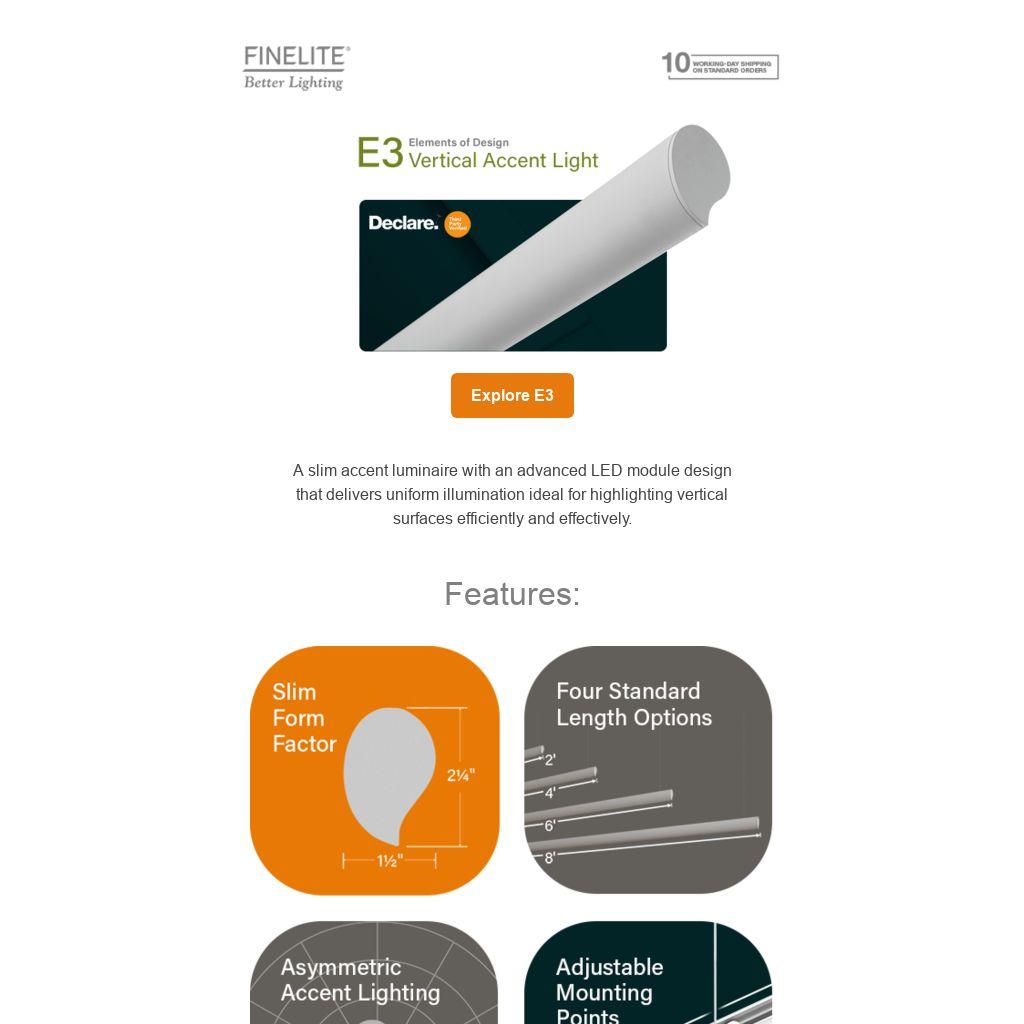 A slim accent luminaire with an advanced LED module design that delivers uniform illumination ideal for highlighting vertical surfaces efficiently and effectively.