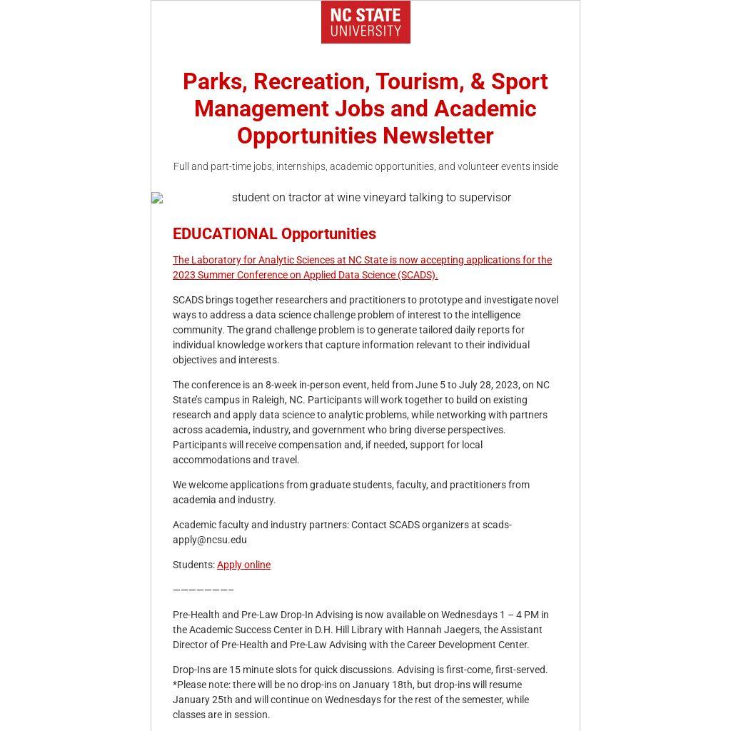 Parks, Recreation, Tourism, & Sport Management Jobs and Academic Opportunities Newsletter