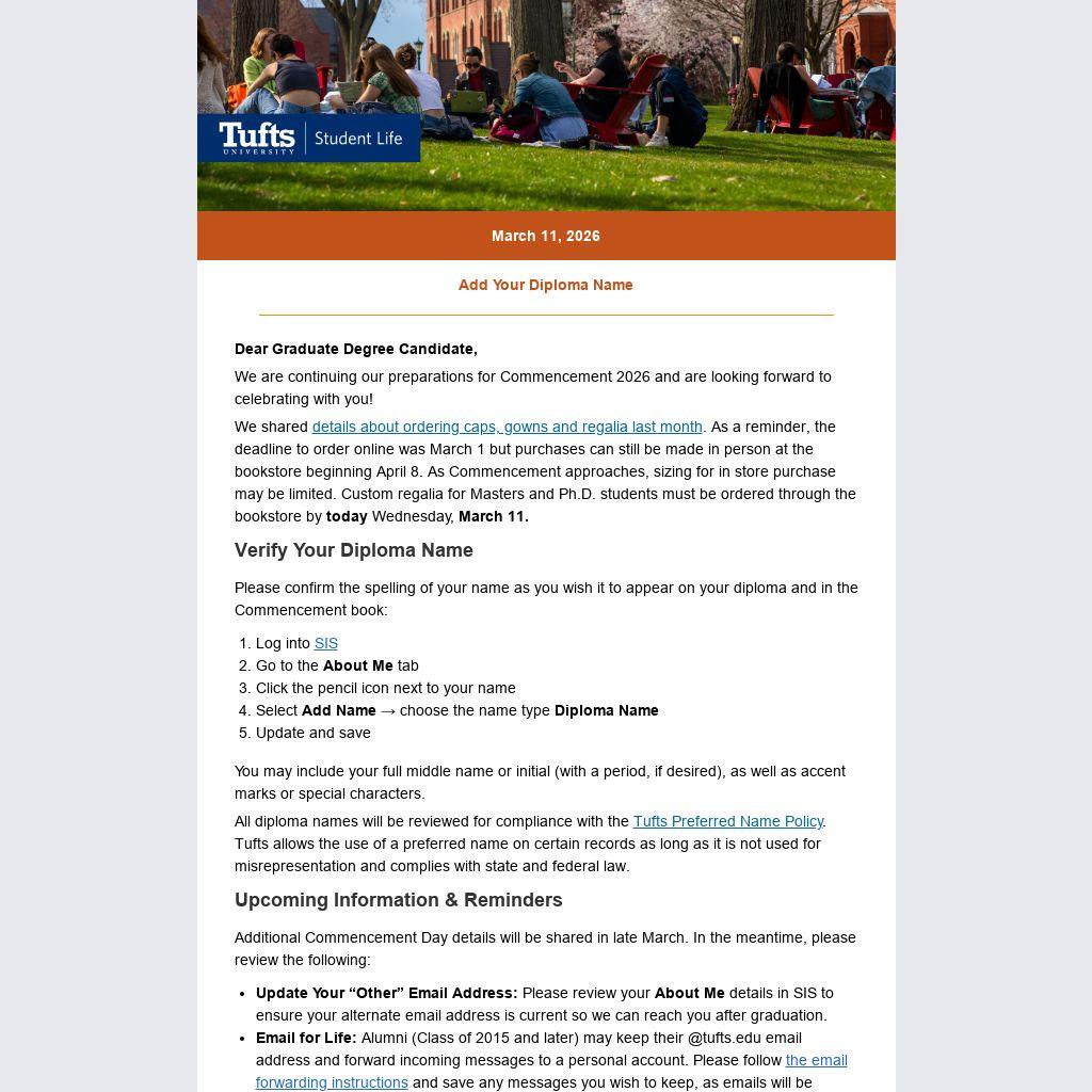 We are continuing our preparations for Commencement 2026 and are looking forward to celebrating with you!