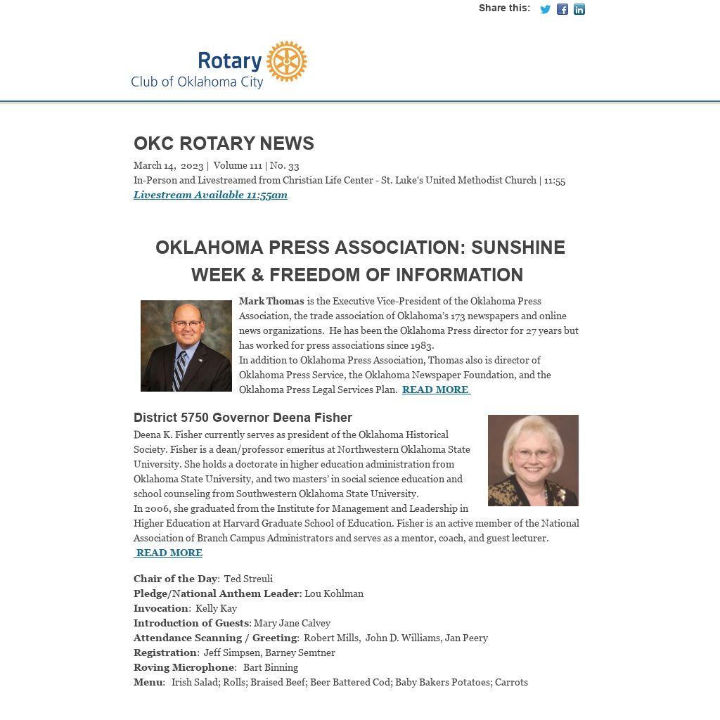 OKC Rotary NewsMarch 14, 2023 | Volume 111 | No. 33