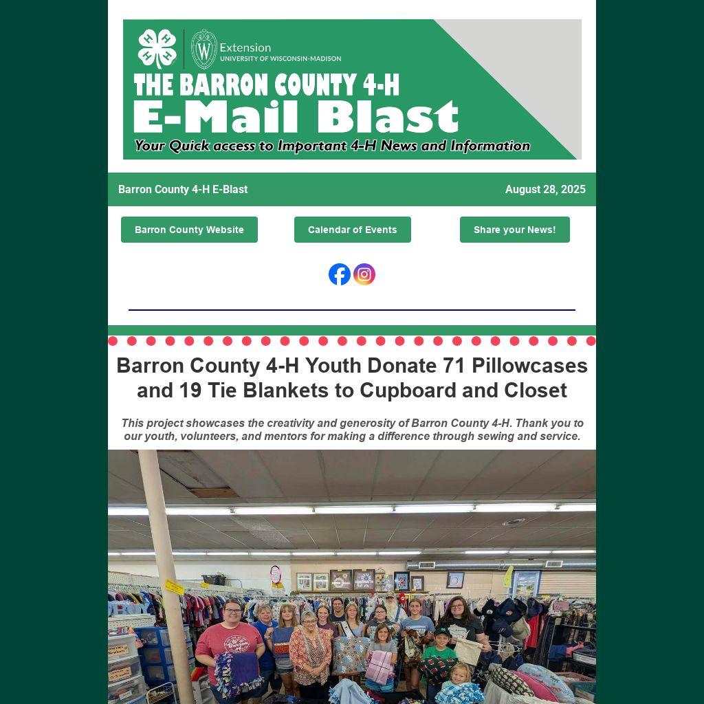 This project showcases the creativity and generosity of Barron County 4-H. Thank you to our youth, volunteers, and mentors for making a difference through sewing and service.
