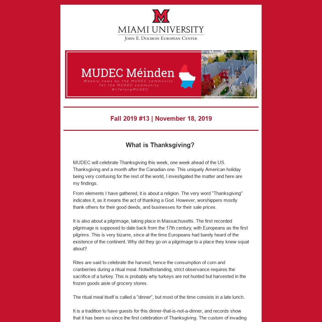 18:00 MUDEC Thanksgiving celebration