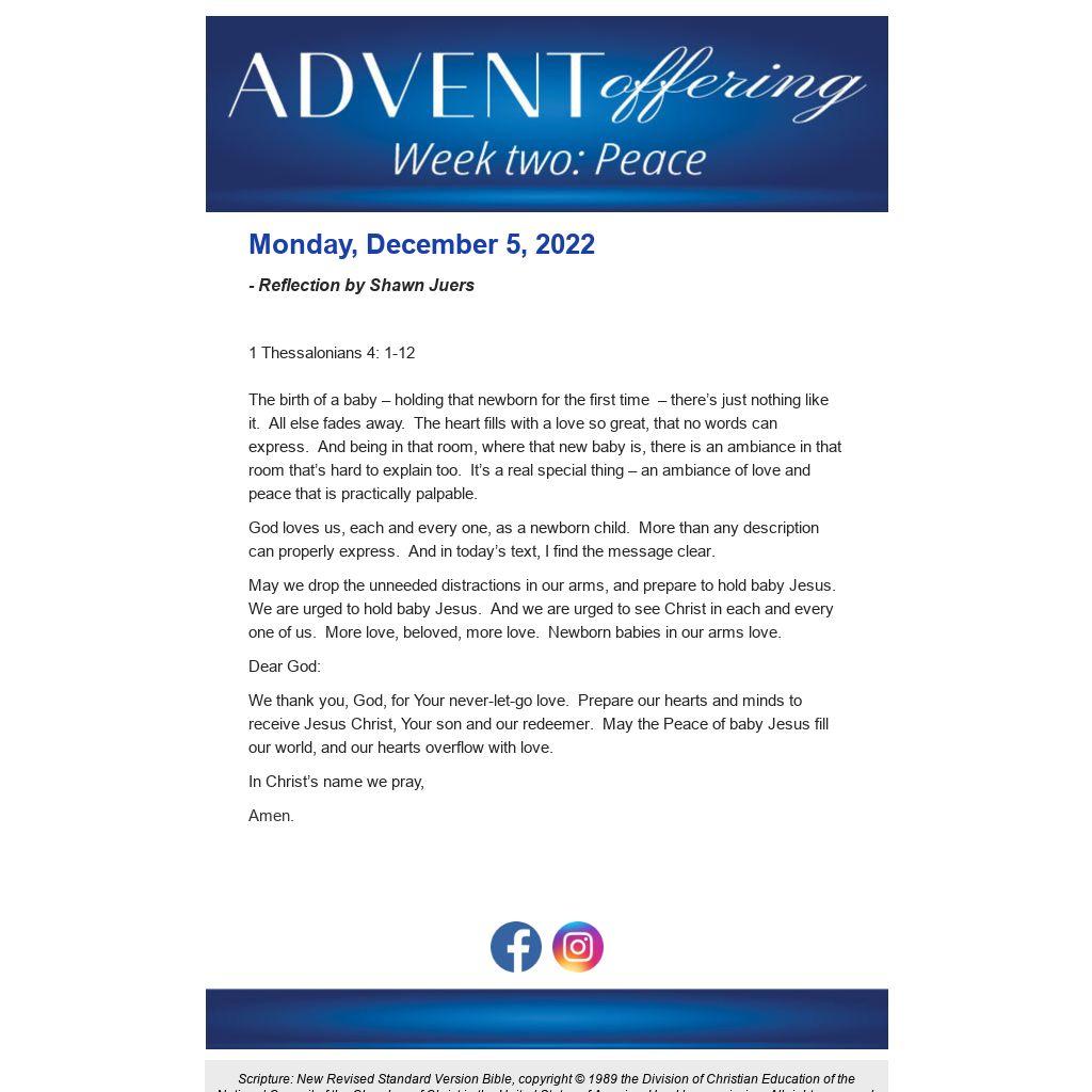 We thank you, God, for Your never-let-go love. Prepare our hearts and minds to receive Jesus Christ, Your son and our redeemer. May the Peace of baby Jesus fill our world, and our hearts overflow with love.