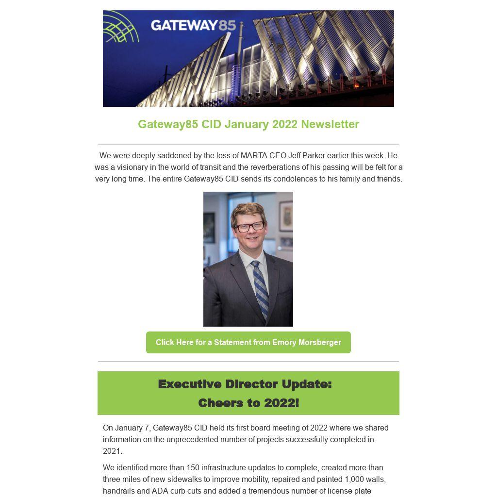 On January 7, Gateway85 CID held its first board meeting of 2022 where we shared information on the unprecedented number of projects successfully completed in 2021.