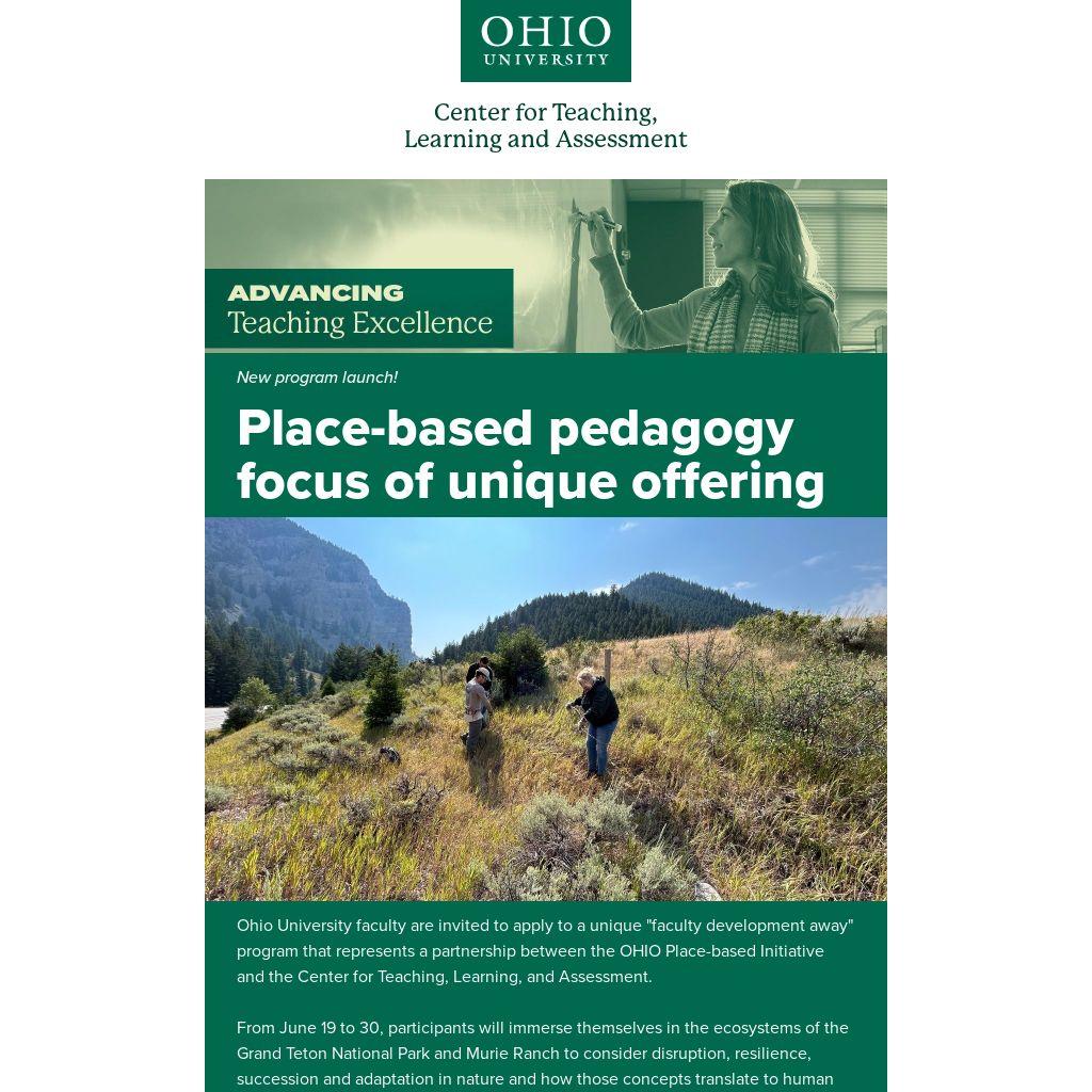 Ohio University faculty are invited to apply to a unique "faculty development away" program that represents a partnership between the OHIO Place-based Initiative and the Center for Teaching, Learning, and Assessment.