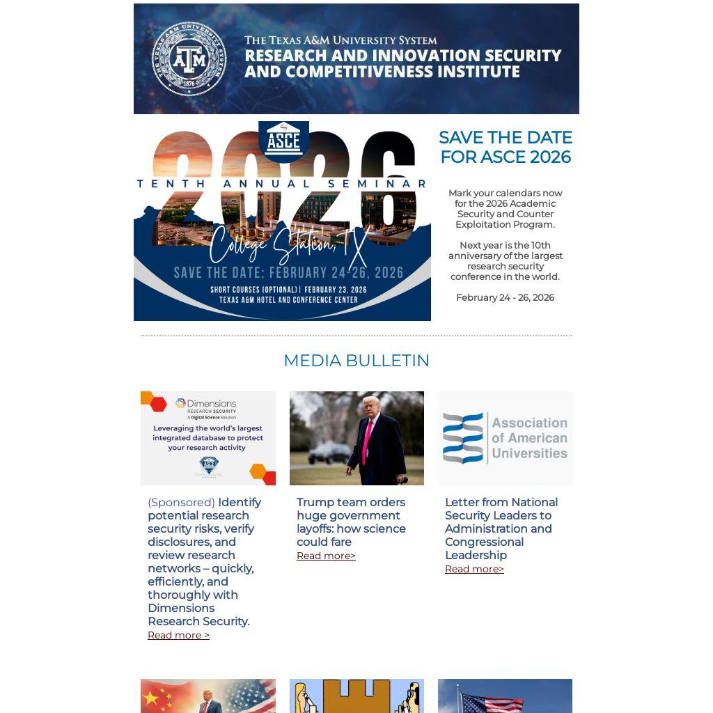 Mark your calendars now for the 2026 Academic Security and Counter Exploitation Program.