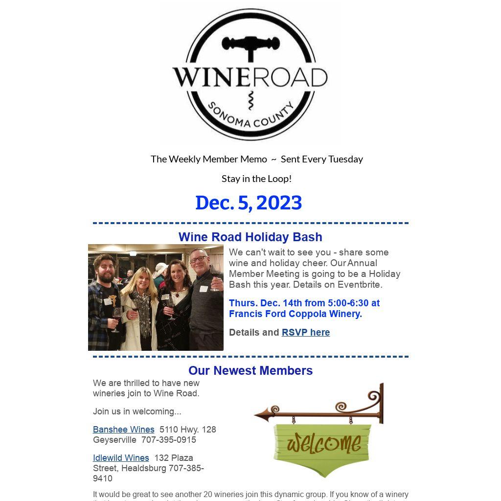 Tickets go on sale mid-January, so we need to get wineries signed up NOW, so we can create the collateral needed.