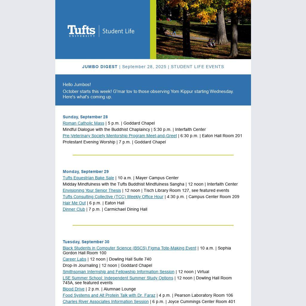 JUMBO DIGEST | September 28, 2025 | STUDENT LIFE EVENTS | |