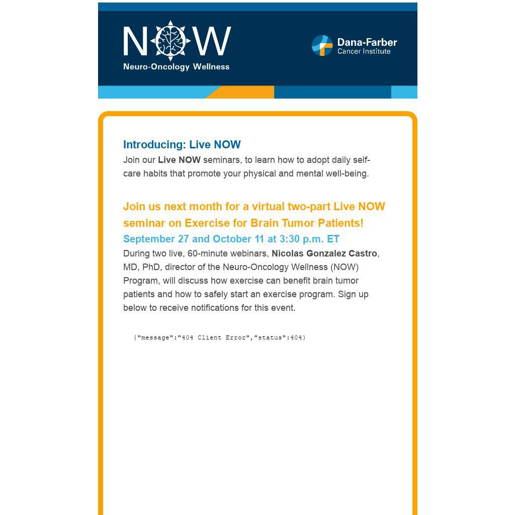 Join us next month for a virtual two-part Live NOW seminar on Exercise for Brain Tumor Patients!