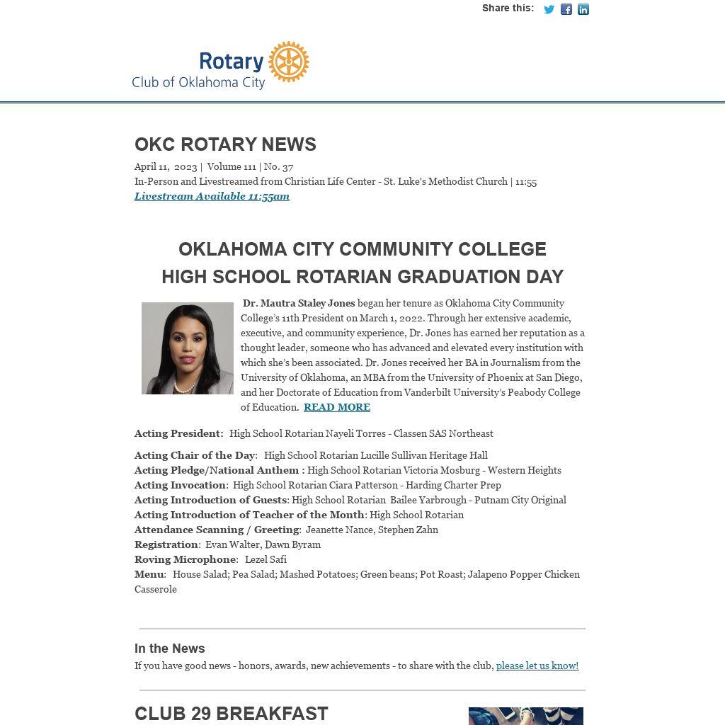 OKC Rotary NewsApril 11, 2023 | Volume 111 | No. 37