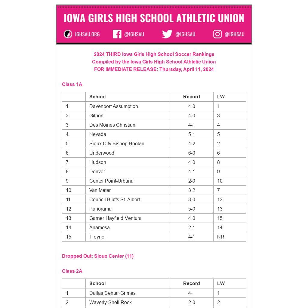 2024 THIRD Iowa Girls High School Soccer Rankings