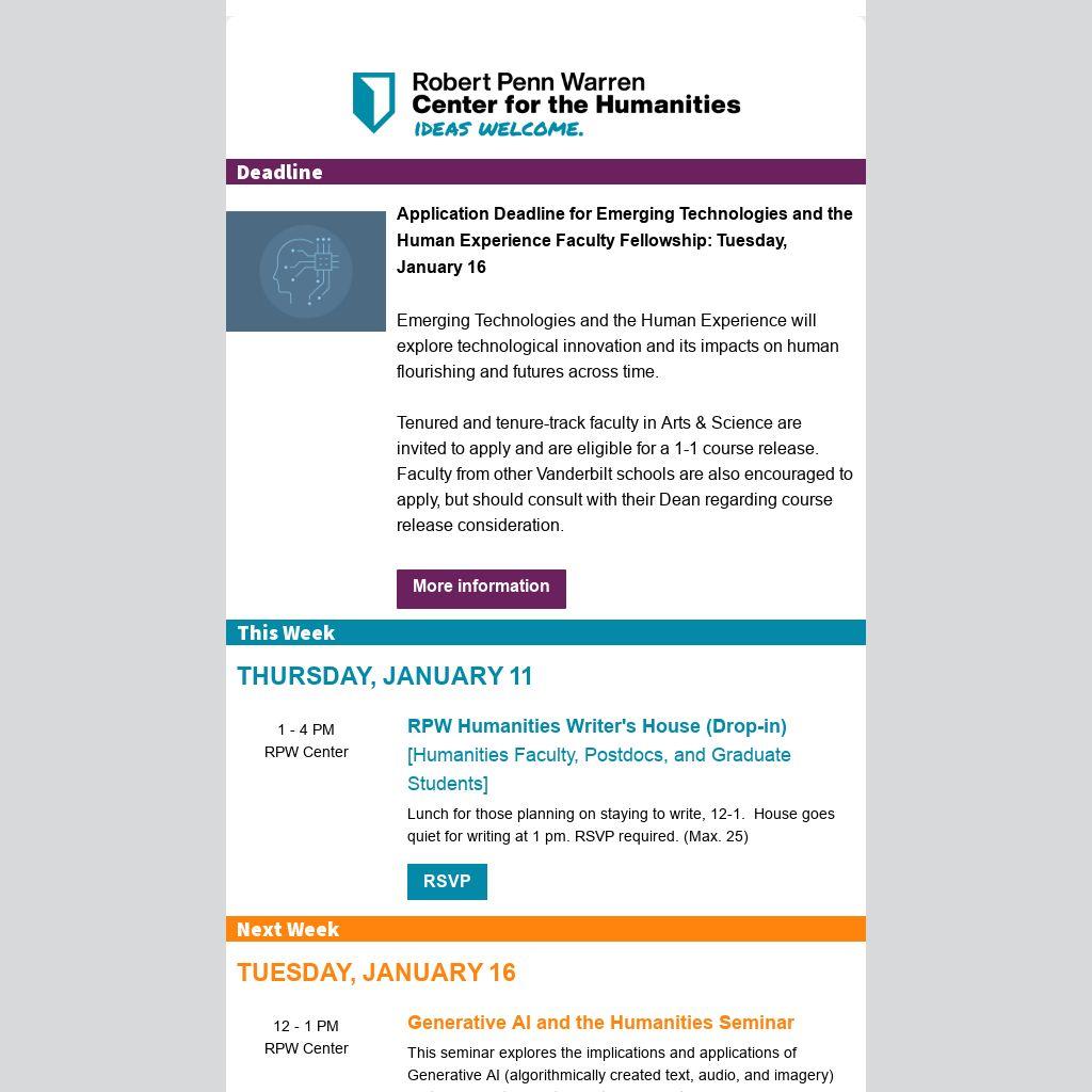 Application Deadline for Emerging Technologies and the Human Experience Faculty Fellowship: Tuesday, January 16