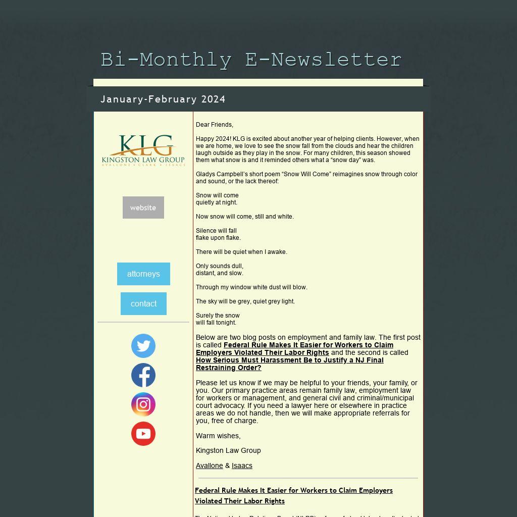 Happy 2024! KLG is excited about another year of helping clients. However, when we are home, we love to see the snow fall from the clouds and hear the children laugh outside as they play in the snow. For many children, this season showed them what snow is and it reminded others what a “snow day” was.