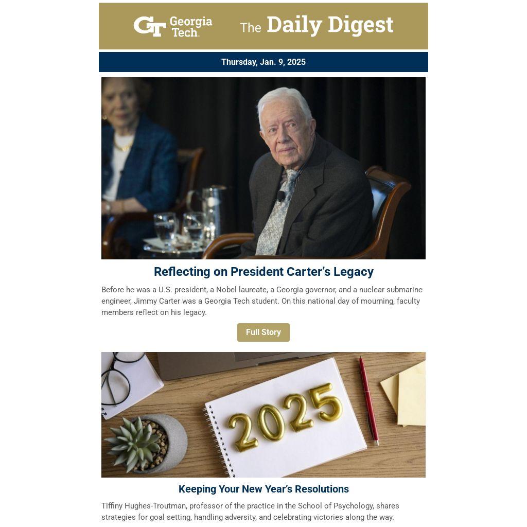 Before he was a U.S. president, a Nobel laureate, a Georgia governor, and a nuclear submarine engineer, Jimmy Carter was a Georgia Tech student. On this national day of mourning, faculty members reflect on his legacy.